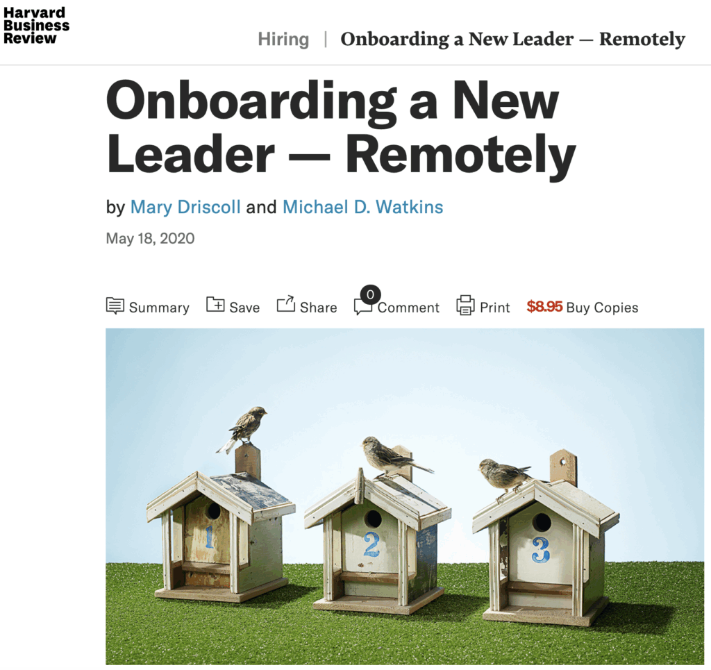 In his co-authored article “Onboarding a New Leader Remotely,”published on HBR.org (May 2020), Michael Watkins invites us to imagine a scenario in which a new executive hire is faced with joining an organization remotely and in which she will be inheriting a remotely-based team in the process. What does transition support look like in the […]
