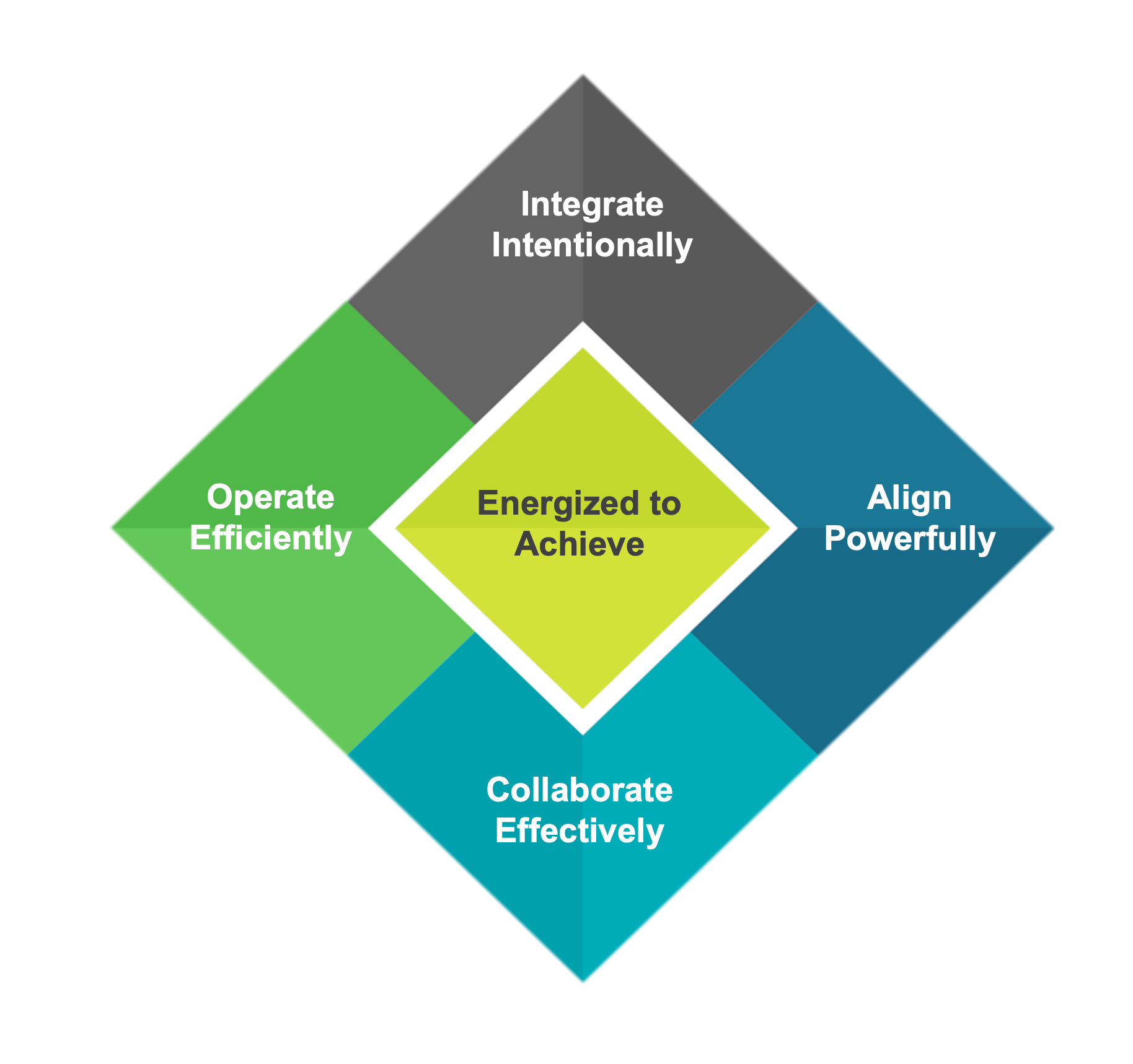 Our five essential pillars enable teams to integrate intentionally, align powerfully, collaborate effectively and operate efficiently to become energized to achieve.